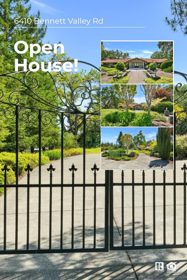 Gracious Bennett Valley Estate home secluded on 7 blissfully private acres of colorful landscaping, majestic Oaks, olive and fruit trees, and 5 acres planted to Pinot Noir grapes. Enter the private gated drive, lined with Crepe Myrtle trees, to experience the serene setting with views to Bennett Ridge and Annadale State Park. The front walkway leads through a portico entry and foyer into an elegant, single level 4,207 sq. ft. +/- home with polished hardwood floors, dramatic floor-to-ceiling windows and open beamed vaulted ceilings in the entry and living rooms, and spacious, relaxed comfort throughout.